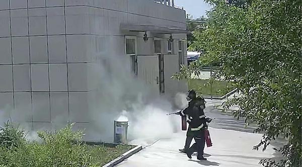 演練模擬了乙醇罐區(qū)在槽車卸醇時發(fā)生泄漏引發(fā)火災(zāi)事故,現(xiàn)場員工第一時間開展應(yīng)急響應(yīng)和初期處置,車間主任接報(bào)后立即報(bào)告公司應(yīng)急救援指揮部總指揮??傊笓]按照既定方案,疏散現(xiàn)場無關(guān)人員,使用室外消防水冷卻泵房,沙土圍截泄漏物,泡沫滅火裝置和滅火器滅火,組織公司應(yīng)急救援隊(duì)伍開展處置,最終將火撲滅。
