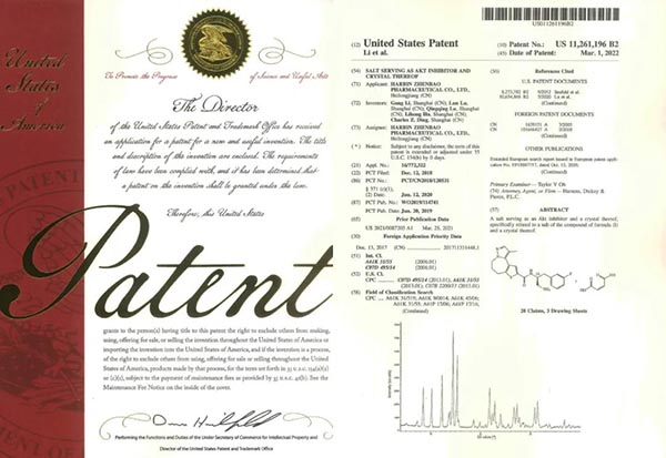 此次《專利授權(quán)證書》的獲得是作為 Akt 抑制劑的鹽型及其晶型分別在美國、韓國獲得的專利授權(quán),是公司在創(chuàng)新藥品研究方面的重大進(jìn)展,有利于進(jìn)一步完善公司知識(shí)產(chǎn)權(quán)保護(hù)體系,充分發(fā)揮自主知識(shí)產(chǎn)權(quán)的技術(shù)優(yōu)勢(shì),促進(jìn)技術(shù)創(chuàng)新,從而提升公司核心競(jìng)爭(zhēng)力。該項(xiàng)專利獲得后,將依托劑型優(yōu)勢(shì),為產(chǎn)品創(chuàng)造更長(zhǎng)久的市場(chǎng)收益。這也是珍寶島藥業(yè)在專利保護(hù)方面邁向國際的又一成果顯現(xiàn)。