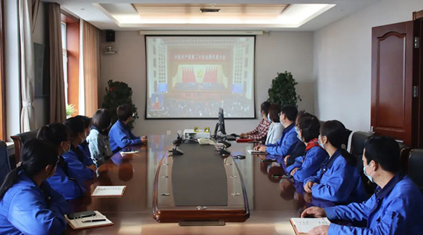 珍寶島藥業(yè)董事長(zhǎng)方同華、黨委書記申哲洙、公司高層管理人員及來(lái)自哈爾濱、虎林、雞西各地區(qū)分公司的一百余名黨員通過(guò)線上+線下形式,集體收看了開幕會(huì)現(xiàn)場(chǎng)直播盛況,認(rèn)真聆聽報(bào)告內(nèi)容。