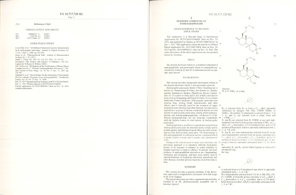 珍寶島9月25日發(fā)布公告,黑龍江珍寶島藥業(yè)股份有限公司(以下簡稱“公司”)收到美國專利局頒發(fā)的《專利授權(quán)證書》。該《專利授權(quán)證書》的獲得,是穿心蓮內(nèi)酯改構(gòu)化合物首次在國際方面獲得專利,也是公司獲得的第三個美國專利。